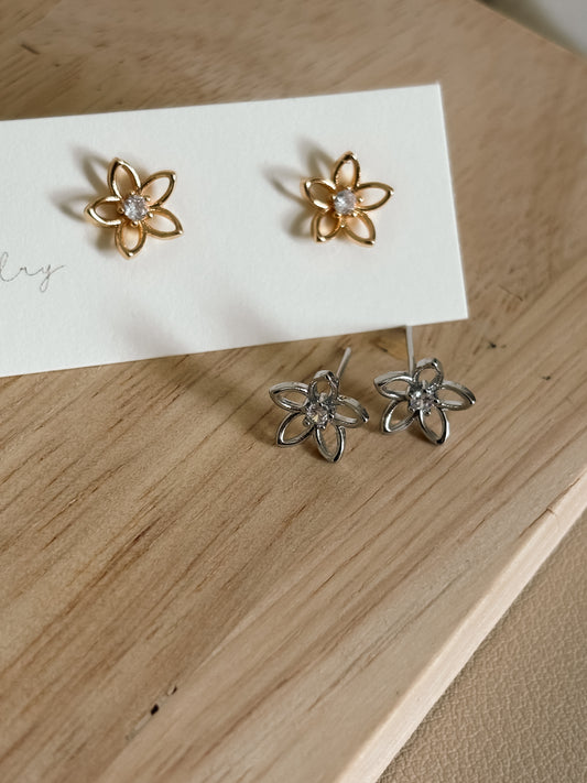 Gold Open Flower Earrings